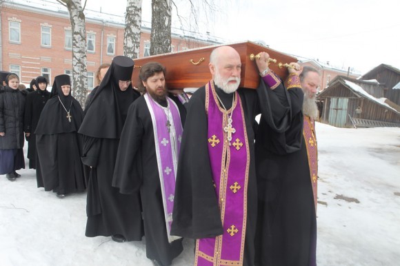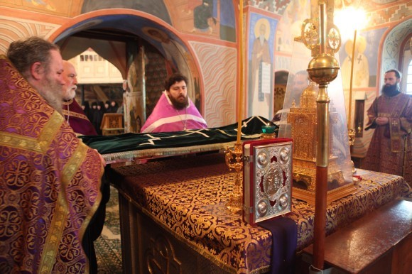 Нерехтского подвижника были изнесены из алтаря на середину храма. Все