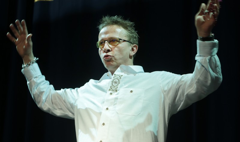 Иван Охлобыстин выходит на сцену под «House of the Rising Sun» и сообщает, что ему тут в социальных сетях рассказали, что его сегодня кто-то хочет застрелить.