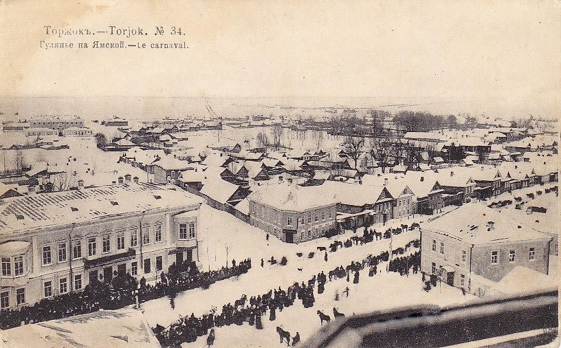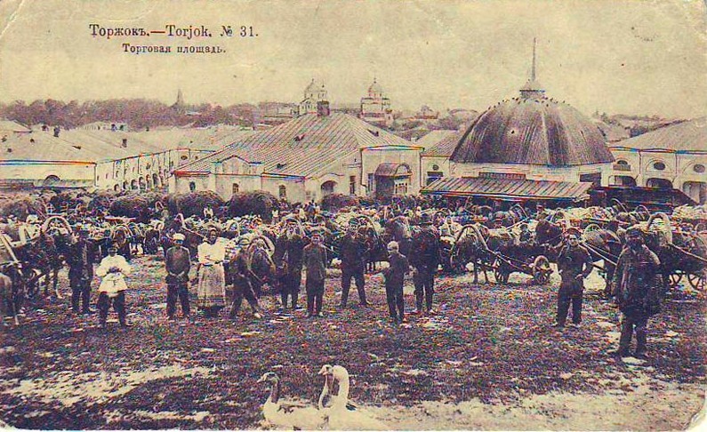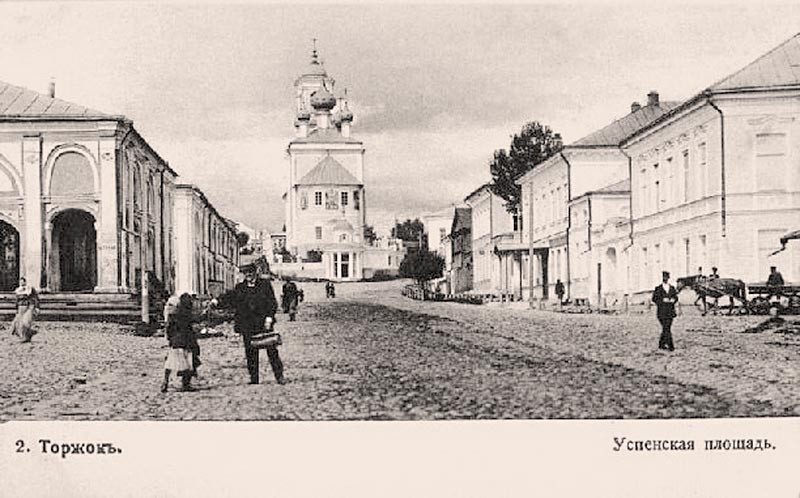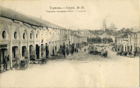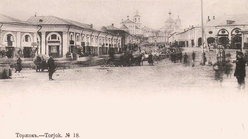 Главная, центральная, площадь звалась в старину «Торговая». Ни «Площади девятого января», никаких других названий у нее не было. На первом Генеральном плане Торжка в XVIII веке она обозначена как «Торговая площадь». Ну, а Сенная и Дровяная площади находились внутри Гостиного двора.