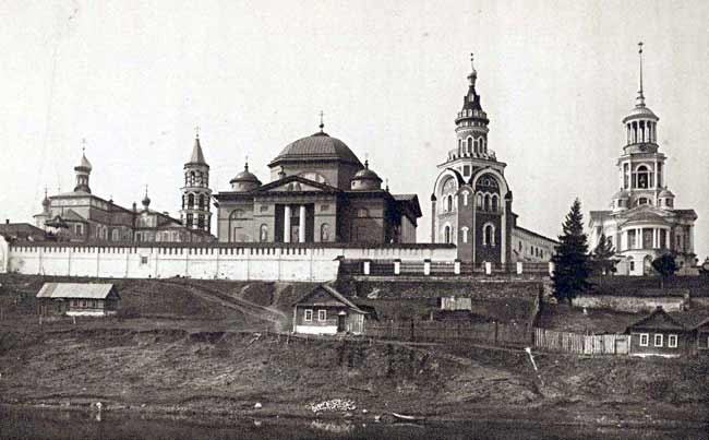 А жили мы в казенной квартире на нынешней улице Дзержинского (тогда называлась Ямская), там, где находилась учительская семинария. Из моей комнаты, прямо из-за моего рабочего стола (когда я в 1932 году пошел в первый класс, мне поставили стол, на котором лежали учебники, буквари, за ним я готовил уроки) я видел начальную школу, где я учился (это была опытная школа при педтехникуме). Дальше из-за зеленого холма выглядывала Никольская церковь в пустыни, Николо-Пустынская. Когда-то до XVII века там был Николо-Пустынский монастырь. Церковь еще действовала, я застал это. А напротив нее через реку на горе из моего же окна виднелась «Дальняя Троица».