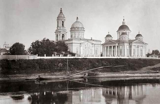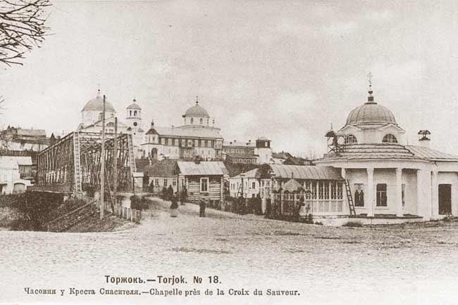 Остальные тридцать две — это отдельно стоящие церкви, приходские, кладбищенские, монастырские. В Борисоглебском мужском монастыре было четыре храма, а в Воскресенском женском, напротив центральной площади, два. Кроме того были и часовни, в монастырях и по городу. Основная, Крестовоздвиженская часовня, или еще ее называли Животворящего креста, стояла на площади, прямо около старого моста. Ее приписывали архитектору Николаю Львову.
