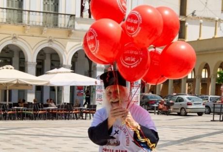 Он купил красные воздушные шары, каждый из которых напоминает каплю крови, написал на них «Сдай кровь. Священная Митрополия Патры», и каждое утро стал раздавать их детям, проходившим через площадь.