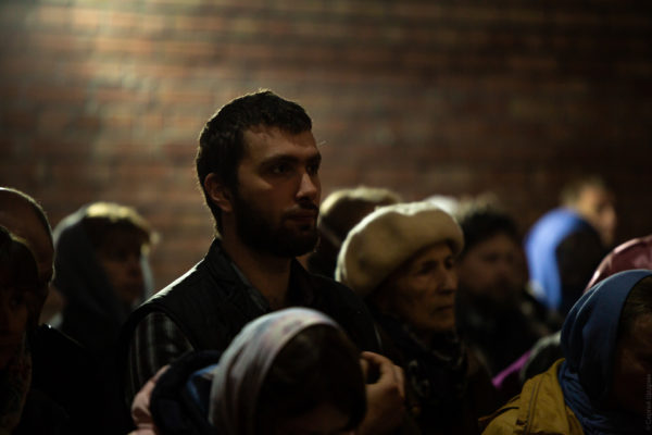 После чтения Евангелия владыка Пантелеимон, епископ Орехово-Зуевский, вышел прямо в центр храма. Амвона здесь нет и вряд ли будет в ближайшее время. Владыка, стоя среди людей, которые немного расступились, чтобы всем было видно и слышно, утешал: “Мы находимся под Покровом Божией Матери. Чтобы с нами ни случалось, всякий раз учитесь принимать это с благодарностью, только тогда наша жизнь будет постоянно наполняться радостью. Тогда и на службах будет радость, и выходя со служб тоже будет радость. Если будем жить так, как заповедовал Господь, то будем радоваться и Бога благодарить. Так ведь?”. В ответ единодушное “Аминь”.