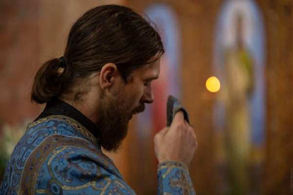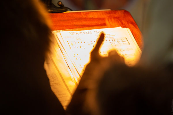 И вот уже толпа смыкается, а дьякон безмолвно, одним жестом, приглашает всех приблизиться к распахнутым Царским вратам. Священников и прихожан от престола разделяет тонкая фанерная стенка временного алтаря. Но ничто не разделяет единодушного безмолвия в этих гулких стенах, где по-особенному торжественно и умиротворяюще тонко звучит Херувимская песнь: “Всякое ныне житейское отложим попечение…”