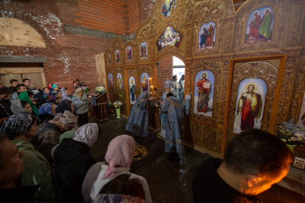 “Господь предузнал, что мы хотим собраться здесь, – ответил владыка Пантелеимон. – Ну как это было устроить? Храм не освящен, благословения на служение литургии нет. Многие из священников, которые сегодня с нами сослужили, и не знали про ваш храм. И вот Господь попустил человеку устроить пожар, чтобы мы с вами вместе собрались. Слава Богу. Вам же хорошо было сегодня? Мне с вами было очень хорошо и радостно, тем более, что сегодня было самое большое количество причастников – 107 человек. Это рекорд. На Пасху у вас было меньше. Я благодарен всем батюшкам, за поддержку. Мы знаем, отец Федор, как вы переживали и мучились. Ну вы же утешены? Давайте еще утешимся и соберём денег на восстановление храма и сгоревшей школы, – призвал всех пришедших на литругию владыка. – Пожалуйста, пожертвуйте кто сколько может и даже чуть больше, чем можете. Богослужения не должны прерываться. Пока малый храм не восстановим, будем совершать богослужения в большом, пусть и не достроенном. Дьявол хочет, чтобы мы не молились и не собирались на литургию. Но Господь не попускает случиться такому злу”.