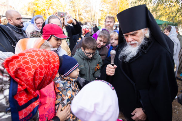 “Мы видим промысл Божий в этот день, – обратился настоятель к владыке и семерым священникам, которые также приехали в храм поддержать отца Федора и его приход. – Богородица вновь покрыла нас своим омофором. Ровно год назад на Покров владыка приезжал на освящение креста, который подняли тогда над куполом. Так что наша встреча — уже традиция”.