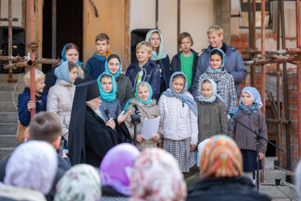 На крыльце, как птенцы, столпились малыши. Белобрысые головки, голубые платочки. Они пели для собравшихся свой гимн, сочиненной матушкой Ниной: “Матерь Божья наша заступница, не покинь нас на этом пути…”