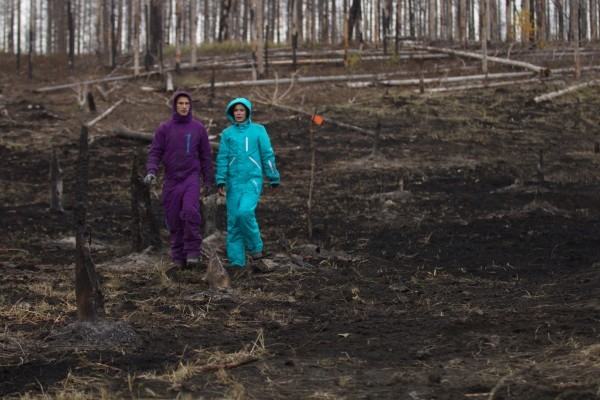 — В течение почти всего фильма герои облачены в пластмассовых цветов костюмы, что смотрится дико в почти монохромной действительности осенней природы… Расскажите, как вы искали художественное решение картины? Меня лично, признаться, поначалу эти их костюмы ужасно раздражали…