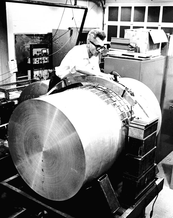 Джозеф Вебер налаживает один из первых детекторов гравитационных волн. Фото: «Вокруг Света» № 02/2007