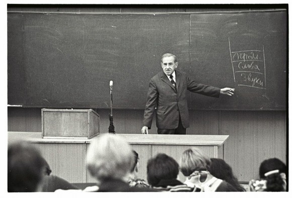 Профессор Владислав Антонович Ковалев на каждой лекции по русской литературе находил какой-то удивительный образ… Помните высказывание Достоевского: «Если между истиной и Христом надо будет выбирать — я выбираю Христа». Вдруг он говорит: «Возможно, вы это не ощутили, и вы, возможно, забудете. Сейчас я сделаю так, что вы это запомните на всю жизнь. Я прошу выйти из рядов трех человек — двух юношей и одну девушку. Вы, юноша, будете Христос, вы — Достоевский, а вы — истина. Юноша-Достоевский, встаньте между ними. Возьмитесь за руки. Вот Достоевский держит за руку Христа и Истину. А теперь Достоевский говорит, что если ему нужно выбирать между Истиной и Христом — я выбираю Христа. Девушка — отойдите от юноши-Достоевского. Вот они вместе. А теперь то же самое, без моей подсказки». Когда они это изобразили — весь курс запомнил, и помнят до сих пор, я проверял на встрече однокурсников.
