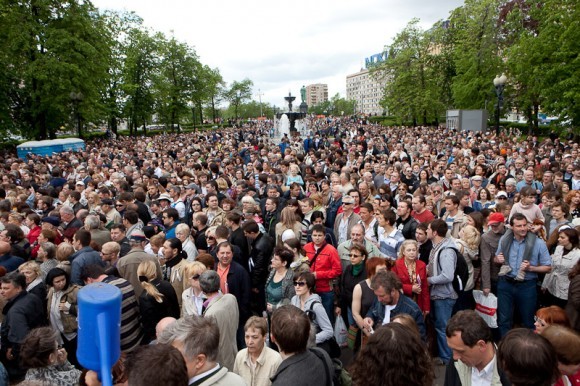Удалось ли писателю понаблюдать за технологиями эскалации борьбы и страдания, лично для меня осталось загадкой — гуляющие были настроены мирно и совсем не революционно. Правда, их оказалось очень много, и когда движение в сторону Чистых прудов началось, пришлось перекрывать бульвары, но гнева или хотя бы непонимания народного со стороны наблюдать почти не приходилось.