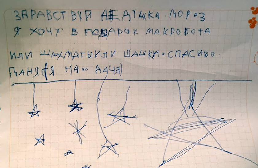 — Ребенок начал обращаться к Деду Морозу, наверное, лет с трех. Сначала он рисовал картинки, потом уже начал писать письма.