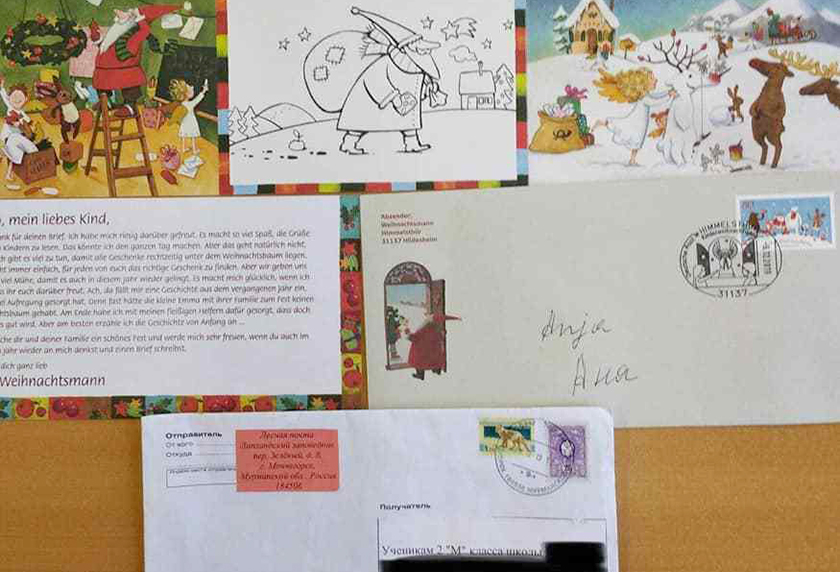 Немецкому Деду Морозу писали дважды коллективное письмо от класса, перечислили имена всех учеников, и ответы пришли каждому именные. Дети были в восторге. В одном письме кроме пожеланий был рецепт рождественского печенья, а во втором — схема изготовления рождественской звезды. Очень интересно, мы потом сделали поделку вместе.