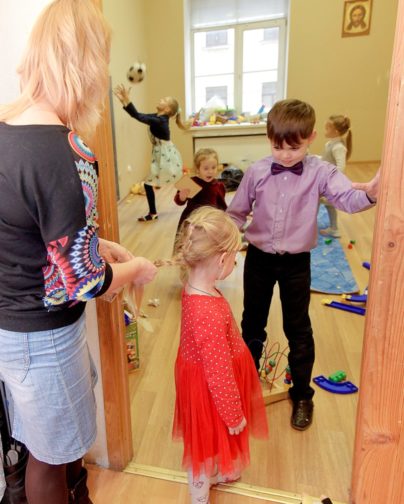 Раз в месяц для людей с ментальными особенностями служится общая Литургия, на ней обычно регентует супруга отца Димитрия Светлана (она же библиотекарь, делопроизводитель, администратор сайта и соцсетей прихода). Матушка Светлана и две старшие дочери — друзья в одной из общин «Веры и Света», а младший, 9-летний Алеша, цитируя отца Димитрия, «на подходе».