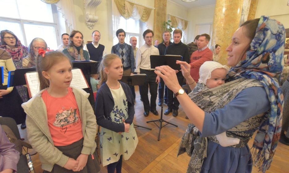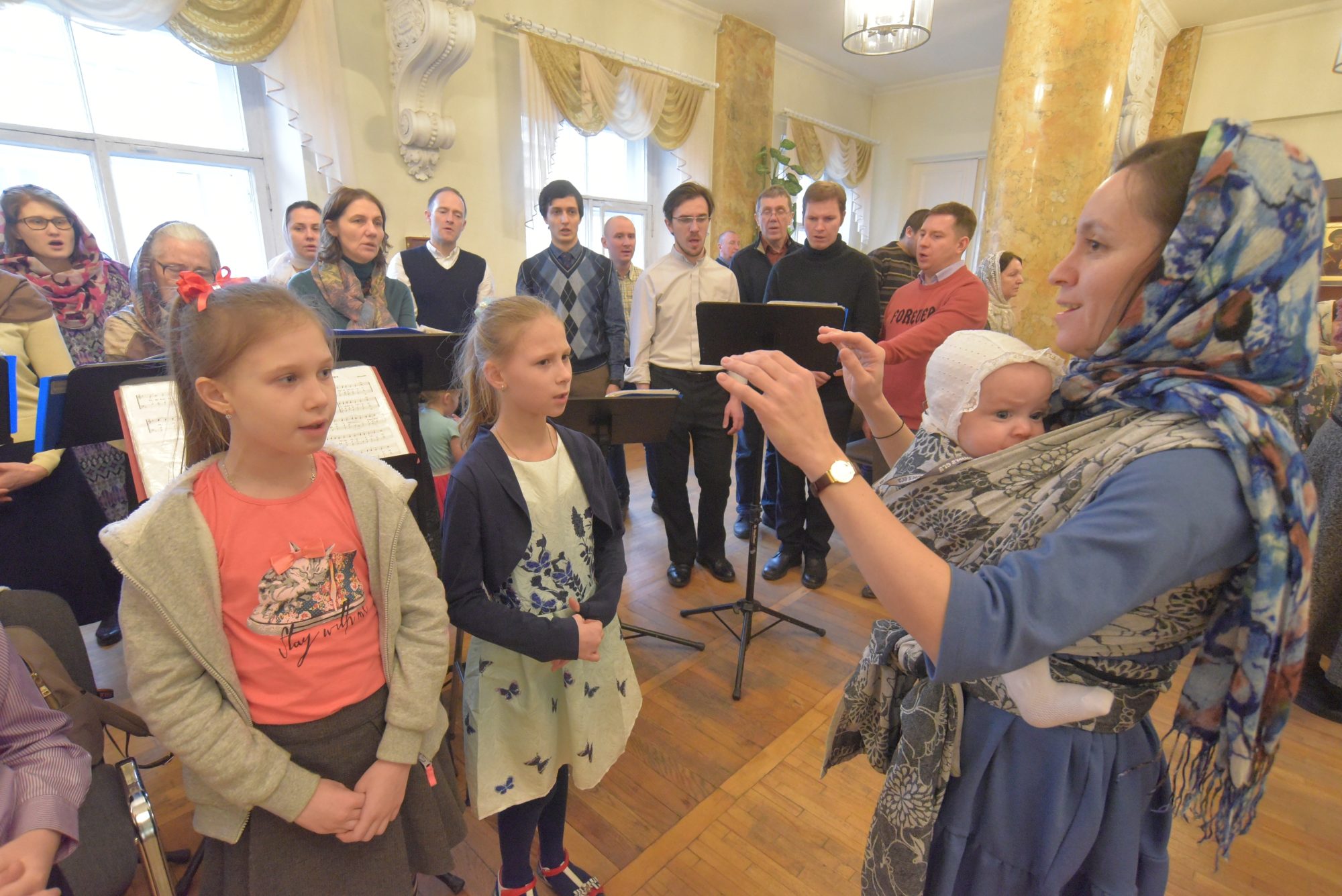 Свои же сосредоточены на молитве. Иногда кому-то из самых юных раньше положенного срока удается «прорваться» из коридора на середину храма и притянуть внимание. Трудно не улыбнуться годовалой малышке, зажавшей нитку бус в ручке как четки, или девчушке постарше с завязанным на манер слинга платком, из которого торчат две кукольные головки. Но ребенка уводят в оборудованную детскую комнату родители. Все знают, что настоятель призывает к максимально осмысленной вере и осознанному участию в таинствах.