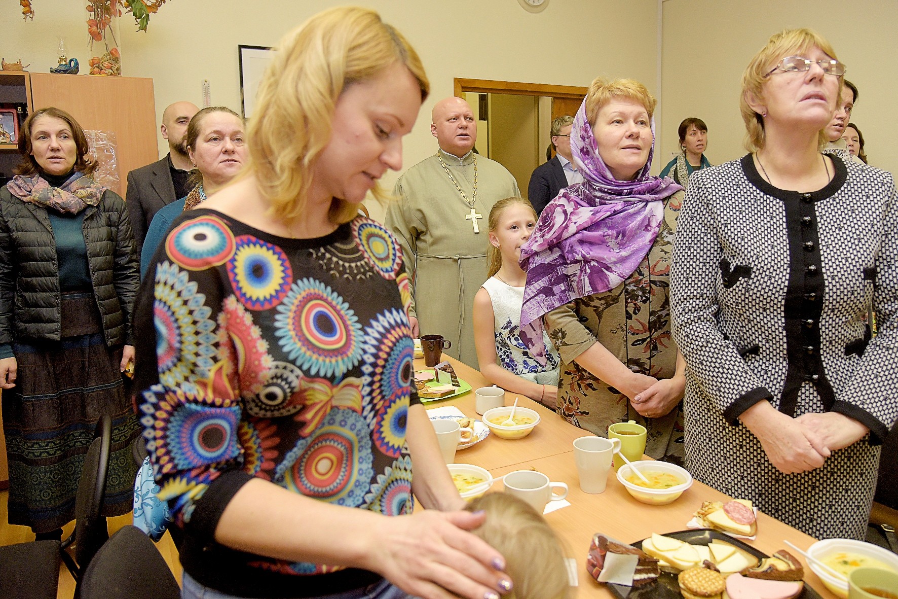 После Литургии глухие и слышащие расходятся по разным помещениям на трапезу. Вкусный суп давно готов. Традицию совместного вкушения пищи в продолжение литургического общения установили еще апостолы. В приходе это — время перехода от живого общения с Богом к живому общению с братом или сестрой во Христе. Тон задает настоятель.