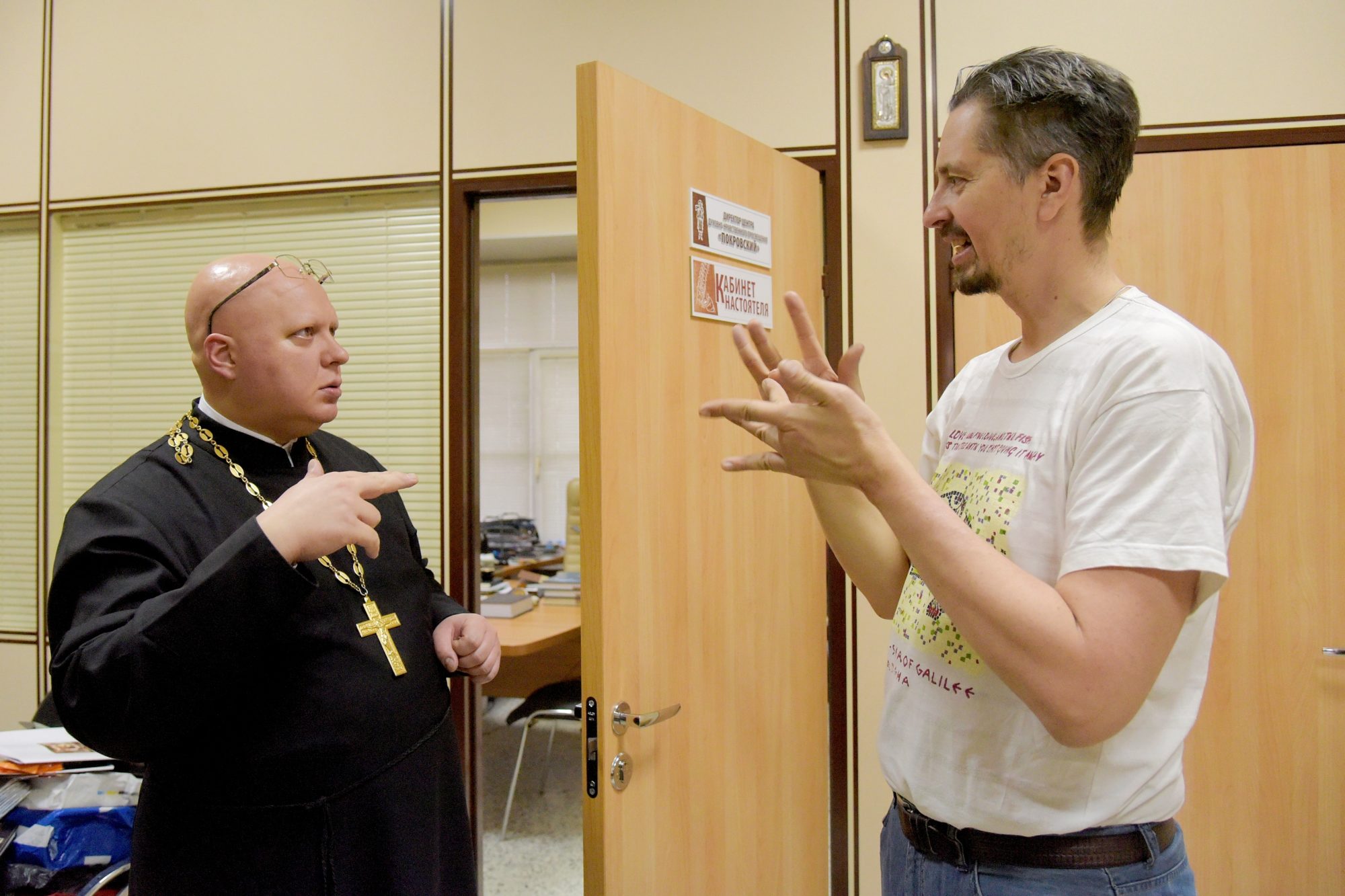 — Было страшно становиться настоятелем храма, где окормляются глухие, — признается настоятель. — Страшно передать что-то не так. Но однажды бабушка Нина, одна из наших самых авторитетных прихожанок, ей под 90 лет сейчас, подошла ко мне и сказала: «Это хорошо, что у вас нет бороды, легко читать по губам». Люди с проблемами по слуху оказались очень благодарными. Для них ценно, когда слышащий человек начинает говорить на их языке, и они активно помогают, подсказывают, никогда не смеются над ошибками. Я немного выучил жестовый язык и, главное, больше не боюсь сказать что-то не так.