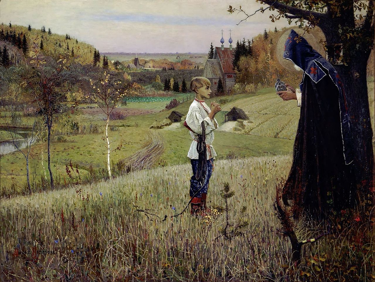 Именно этот эпизод жития преподобного Нестерев передал на своем самом известном полотне – «Видение отроку Варфоломею». Ни одна деталь не была упущена: здесь и вековой дуб посреди поляны, и просфора, протянутая старцем, и Варфоломей, трепетно ожидающий чуда.
