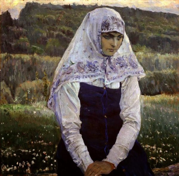 Как Тургенев, написав Асю, Лизу и других их сестер и подруг, создал свой женский образ, и достаточно сказать: «тургеневская девушка», чтобы младшая сестра пушкинской Татьяны предстала пред нами, так достаточно назвать «нестеровская девушка», чтобы появился пред нами живой облик девушки из народа, поэтический образ, неразрывный с безмолвной печалью. Эта девушка в сарафане, рожденная Нестеровым из его скорби по утерянной подруге, повела за собою на его картины целую вереницу девушек и женщин, исполненных внутренней красоты и чистоты, но всегда отмеченных «возвышенной стыдливостью страданья»»[6].