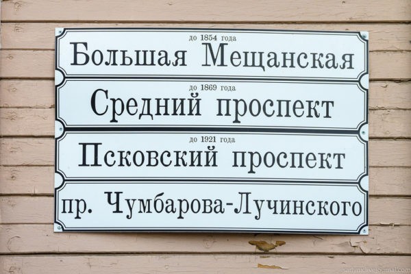 Исторические названия некоторых улиц всегда перед глазами и у жителей Архангельска. Центральный города, названный в честь революционера Чумбарова-Лучинского, за свою историю поменял несколько наименований. До этого проспект был Псковским и Средним, а еще раньше — Большой Мещанской улицей.
