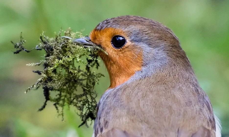 Кто сказал, что стройка — мужская работа? Самка малиновки собирает мох для гнезда в саду на юго-западе Лондона. Фото: Виктор Шиманович/NurPhoto/Shutterstock