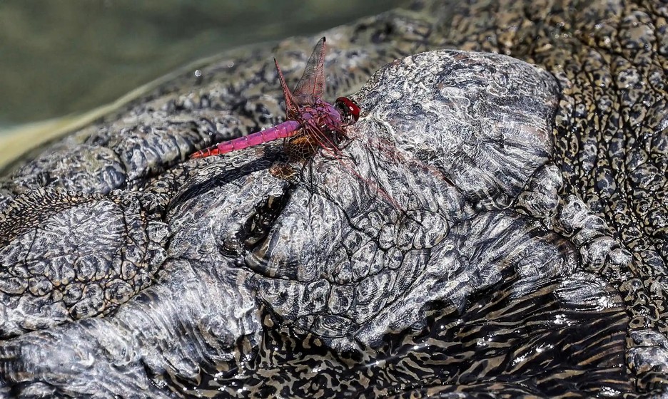 Ничего необычного, просто стрекоза сидит на голове крокодила в крокодиловом парке Дубая. Фото: Джузеппе Какаче/AFP/Getty Images