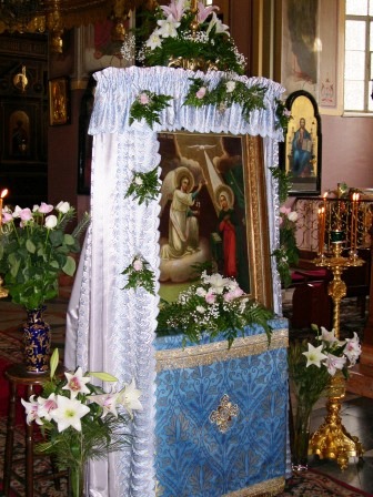 Согласно местной традиции в Иерусалиме на пятый день после праздника Благовещения Пресвятой Богородицы чтимая икона Благовещения из Св.-Троицкого собора Русской Духовной Миссии переносится в Горнюю женскую обитель Миссии. Это совершается каждый год в память того, как Пречистая Дева Мария «иде в Горняя со тщанием… и вниде в дом Захариин и целова Елисавет» (Лк. зач.4).