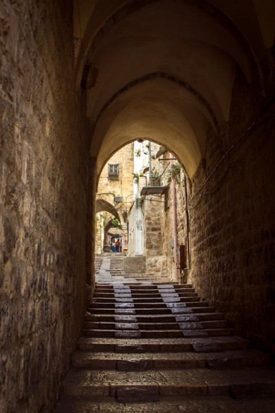 Я уже начинаю различать улочки старого города, но «крыша» явно куда-то едет. Эмоциональные крики и арабов, зазывающие в свои лавочки. Они намётанным глазом определяют, кто мимо них идёт, и начинают читать стихи на разных языках. На русском – что-то про Наташу, которой надо в лавку нашу. Премилые хасиды с удивительными глазами, будто они постоянно чем-то испуганы. Странные товарищи, гуляющие туда-сюда в одеждах, стилизованных под древность и таскающих на себе огромные кресты. Несколько языков сливаются воедино. Случайная прохожая оборачивается и сообщает, тыкая себя в грудь: «Egyptiancopt» и широко улыбается. Безумный город.