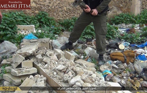 На фотографиях боевики кувалдами разрушают надгробия и кресты христианских могил в Ираке, — сообщает MEMRI