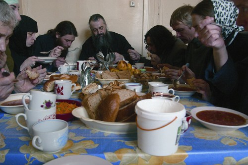 Зинаида (тетя Зина) уже двенадцать лет как на пенсии. Ушла рано, в пятьдесят лет, так как работала на вредном производстве: заливала реле смолой на релейном заводе. А дома оказалось скучно: родственники заходили редко, подружки тоже. Одна была отдушина — дача. На огороде тетя Зина выращивала огурцы, лук, викторию (так здесь называют садовую клубнику) и т.д. Ходила в лес, потом закручивала банки с грибами, варила земляничное варенье. Получалось так много, что подруга посоветовала: «У нас новую церковь восстанавливают, там мужики работают, их кормить надо. Ты б поделилась своими запасами-то». Тетя Зина поделилась раз, другой и — осталась работать на приходской кухне. «Когда я сюда пришла первый раз, — говорит она, — здесь было как после бомбежки: стены все оббитые, пола нет, ямы. Строительные леса стоят».