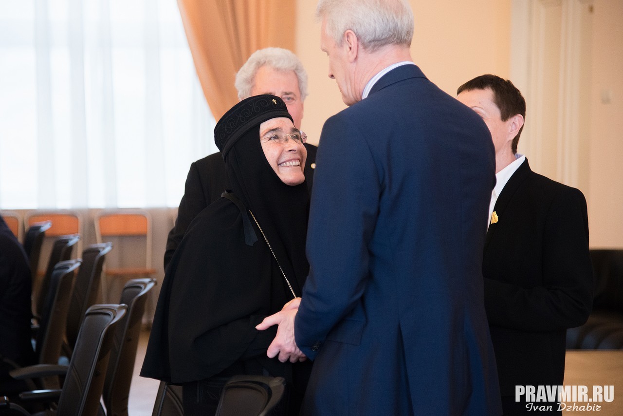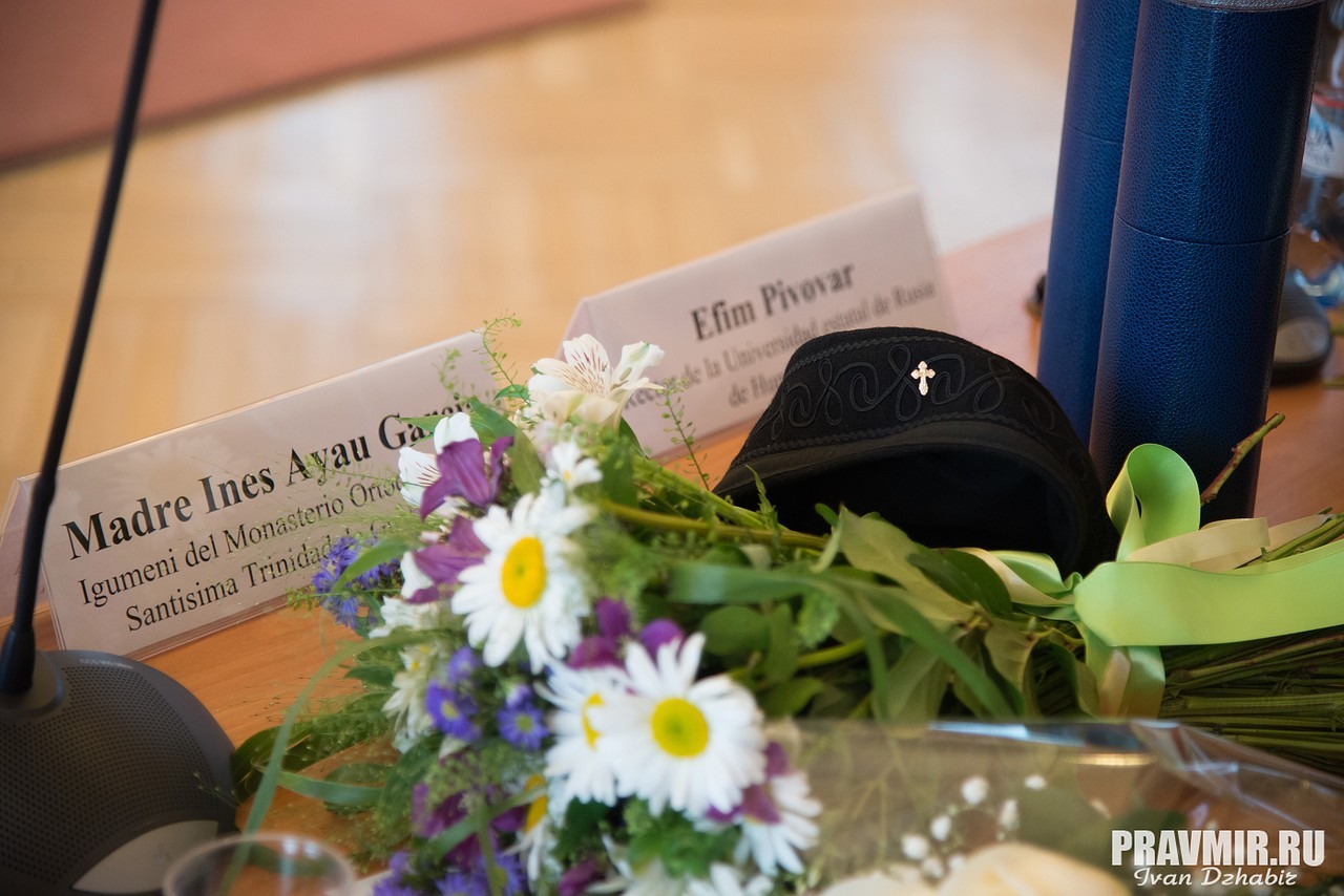 День был насыщенный, только на моих глазах матушка уже сказала благодарственную речь, а потом ещё пообщалась с толпой журналистов, поэтому временами она перескакивает с события на событие. Но всё действительно так – теперь в Гватемале есть Троицкий православный монастырь, а в нём – детский приют, и ещё – научный центр, в котором специалисты из РГГУ преподают гватемальцам русский язык и…утраченную некогда иероглифическую письменность майя.