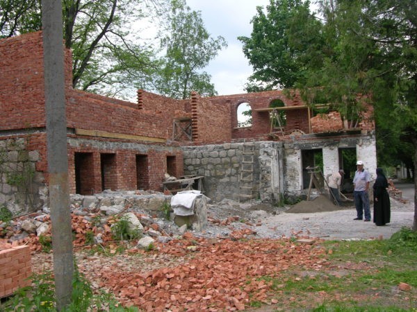 Строили монастырь большей частью своими силами. Часто не хватало средств, но Бог, как говорит настоятельница, не оставлял, откуда-нибудь да появлялась помощь в самый нужный момент. До сих пор на территории обители можно увидеть следы стройки.
