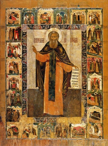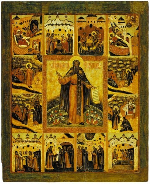 В начале XVI в. для собора Высоцкого монастыря в Серпухове была написана житийная икона преподобного с восемнадцатью клеймами; сейчас икона находится в Третьяковской галерее.