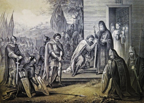 От младаго возраста, отче Сергие, Христа возлюбив и Сего живоносным стопам последуя, мира всего избегл еси и достигл еси в незаходимый свет разума, идеже ныне дерзновенно Святей Троице предстоиши, Юже о всех нас умоли (из канона на обретение мощей преподобного Сергия).