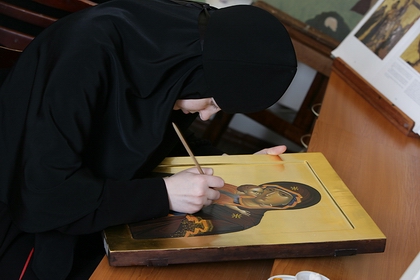 — У нас сестры все с разным уровнем подготовки. Кто-то учился в специализированных художественных заведениях, а кто-то до монастыря и кисточки в руках не держал. Но, независимо от уровня подготовки, все сестры, несущие послушание в иконописной мастерской, постоянно обучаются. Для этого мы приглашаем преподавателей. Сестры тщательно изучают традиции иконописи Византийской и Московской школ (времени их наивысшего расцвета). Мы ездили в Троице-Сергиеву Лавру, в Курскую иконописную школу, знакомились с образцами иконописи во Владимиро-Суздалькой земле, Сербии, Турции, Греции. Чтобы овладеть знаниями, мы постоянно консультируемся с опытными реставраторами и художниками, изучаем литературу. За годы работы при мастерской собрана большая библиотека истории и теории иконописи. Всё это помогает в работе над образами.