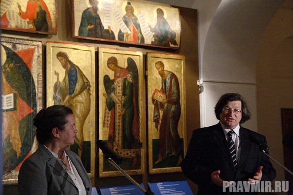 Почему экспозиции одного-единственного произведения придаётся такое большое значение? В чём уникальность иконостаса? Почему на протяжении десятков и даже сотен лет широкая публика не могла лицезреть шедевр во всём его величии? На пресс-конференции, посвящённой открытию выставки, прозвучали ответы на эти, а также на многие другие вопросы.