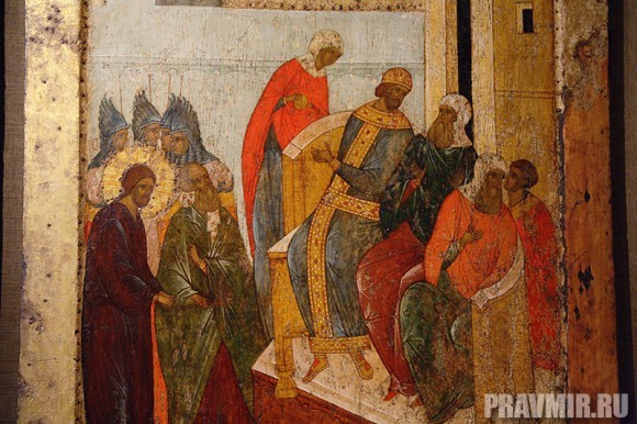 Христос перед Пилатом. Икона из праздничного ряда иконостаса Успенского собора Кирилло-Белозерского монастыря.