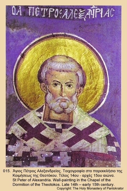 Святой Петр Александрийский. Фреска. Кон. XIV - нач. XV в.