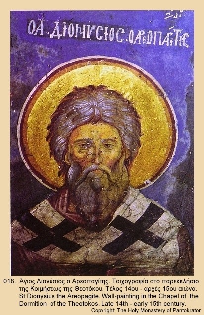 Святой Дионисий Ареопагит. Фреска. Кон. XIV - нач. XV в.