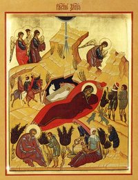 Всмотритесь в икону “Рождество Христово”. Какой тихий, мирный, семейный, именно семейный образ. Бог-Младенец и взирающие на Малютку в тихом умилении Мать и Обручник; пастухи, поклоняющиеся Спасителю, со страхом и радостью простого и верного сердца; мудрецы-волхвы, принесшие дары-символы, знак того, что земная мудрость всего лишь часть мудрости небесной. Мирная ночь, а над всем Вифлеемская звезда. Сколько мыслей и молитв родится рядом с этой иконой.