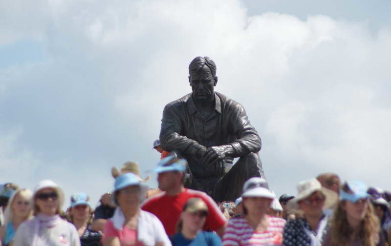 Главные мероприятия Шукшинских чтений традиционно проходят на горе Пикет, откуда, по словам самого писателя, «всю Россию видно». Там теперь стоит памятник, подаренный селу скульптором Вячеславом Клыковым. Василий Макарович такой же, как и в последних кадрах фильма «Печки-лавочки» — смотрит вдаль, задумчив… О чем бы он думал сейчас, с каким бы настроением смотрел бы и на всю Россию, и на родное село? Наверное, пытался бы ответить на тот же вопрос, которым задавался всю свою жизнь: «что с нами происходит?»