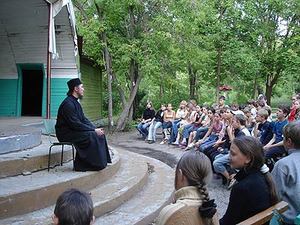 Алтарник Алексей Ковтун: Считаю, стоит почаще устраивать православные лагеря и сборы. Например, типа «Преображенского стана на Тверской земле», на котором я сподобился побывать этим летом (см. сайт Тверской епархии). Там все – и взрослые, и дети – чувствовали себя живым организмом: вместе причащались, играли, несли какие-то послушания, обучались. Всё это происходило без принуждения, с любовью, с доброжелательством, начинаясь и заканчиваясь молитвенным правилом, на котором присутствовали юные станичники.