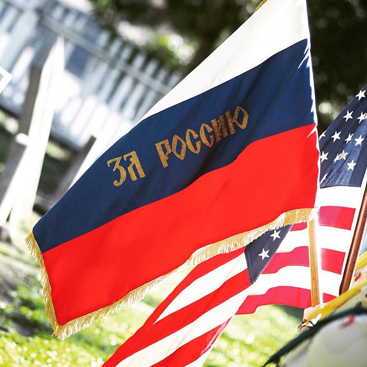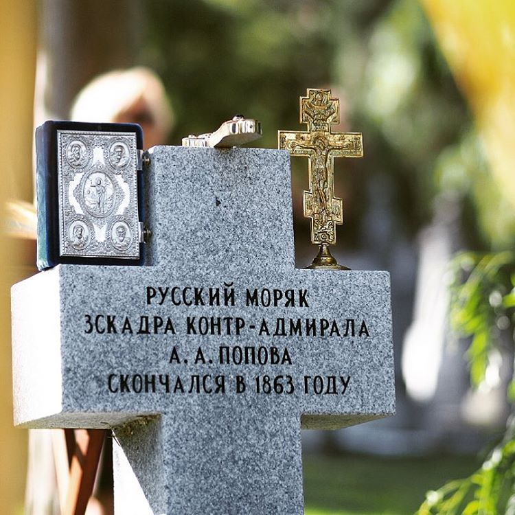 На панихиде по русским морякам, похороненным на острове Мэр-Айленд. Шесть похороненных здесь моряков были частью экипажа российских эскадр в Сан-Франциско в 1863 году, направленных в поддержку федерального правительства Севера Америки.