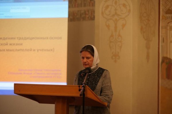 Ирина Канурская, сотрудник «Регионального Фонда Память мучеников и исповедников Русской Православной Церкви» выступила с докладом на тему «Роль одежды в возрождении традиционных основ русской жизни (по трудам духовных мыслителей и ученых)». В качестве презентации Ирина Канурская показала фотографии русской народной одежды: