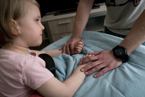 А в год и три месяца начался регресс. Ника перестала самостоятельно двигать руками, сидеть, стала очень плохо держать равновесие. Начала теряться и падать. Появились подергивания, сильно мешавшие управлять телом. В два года она окончательно потеряла способность переворачиваться самостоятельно.