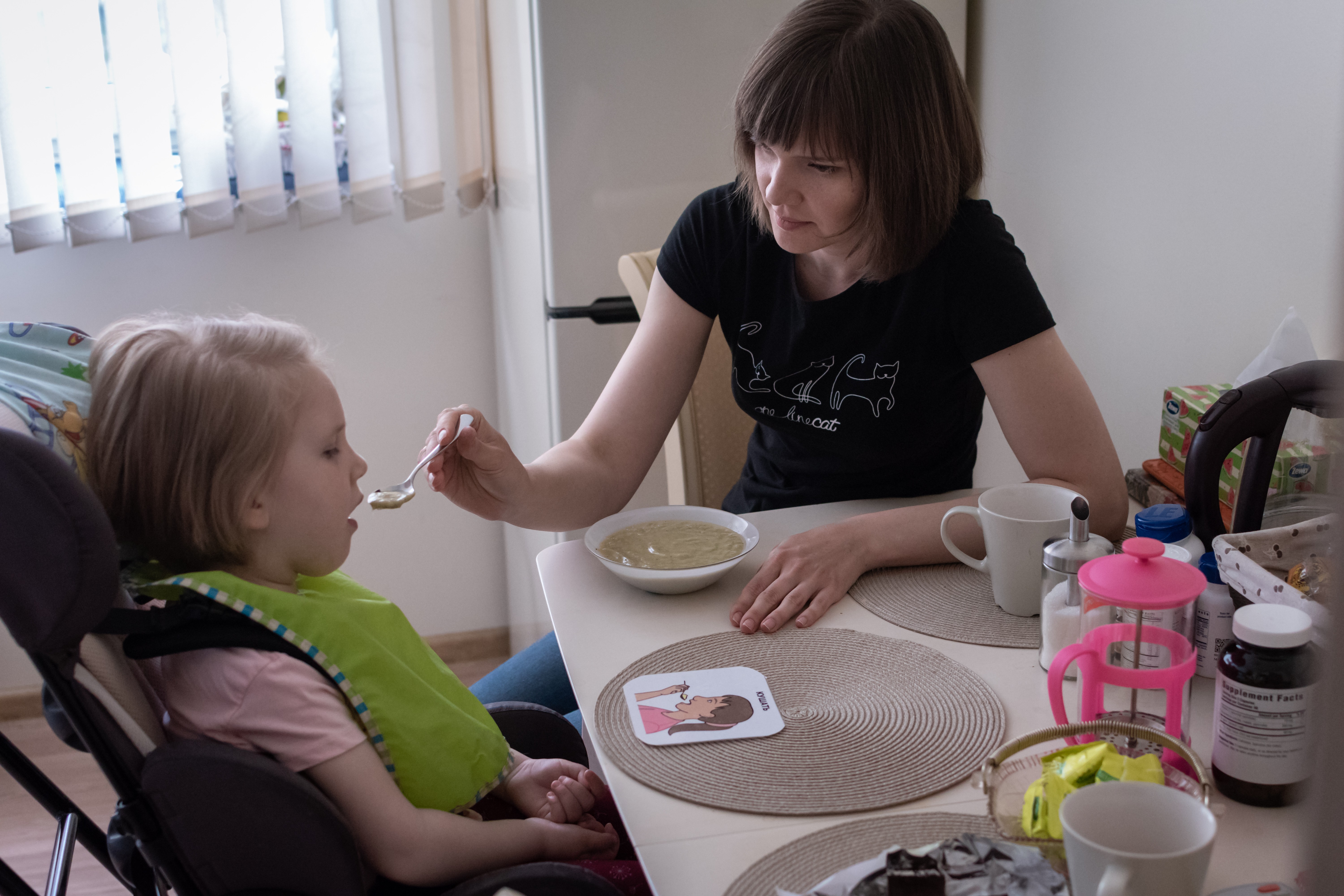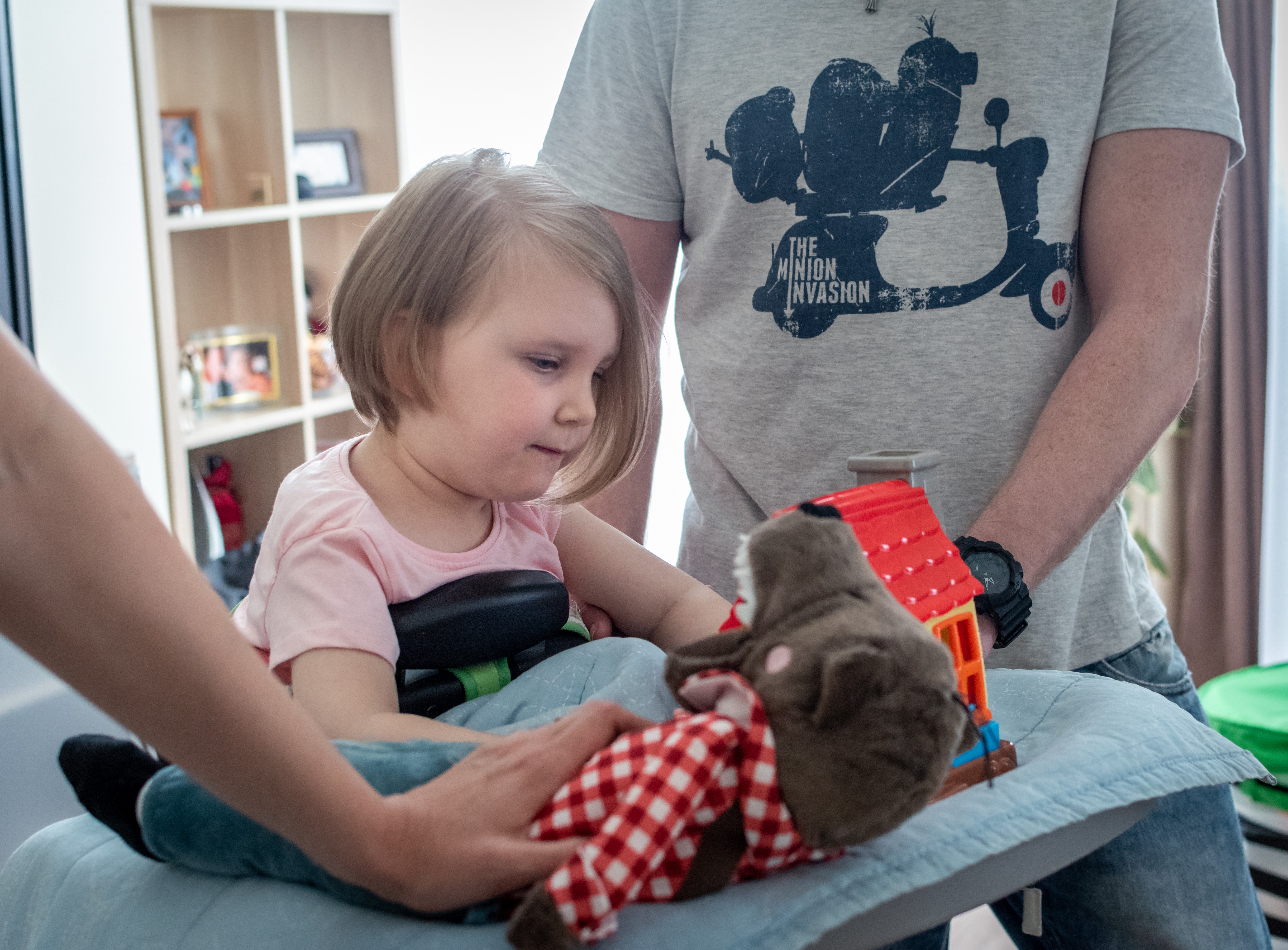 — В семь месяцев у нас была специалист, которая приезжала к нам домой и учила, как Нику переворачивать, как правильно делать движения, чтобы она запомнила, выучила и могла повторить. Мы стали заниматься. Потом попали в отделение абилитации в поликлинике, занимались раз в неделю на групповых занятиях, на социализации и на индивидуальных, где нам показывали, как лучше ее двигать, чтобы не было осложнений. Дочь научилась сидеть и стоять с опорой.