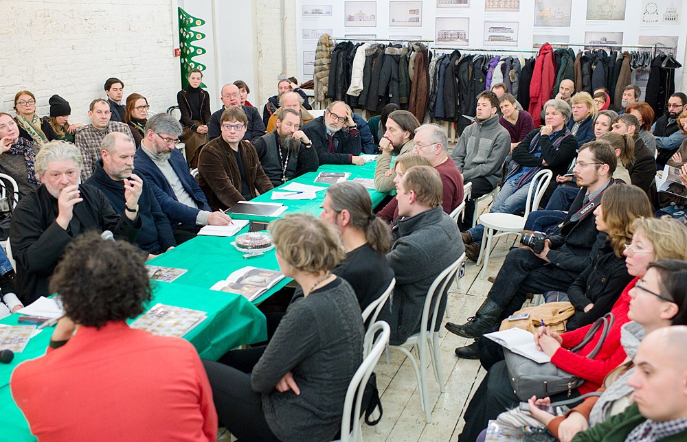 Открывая круглый стол, организаторы сразу обозначили два взгляда на историю выставок христианского искусства.