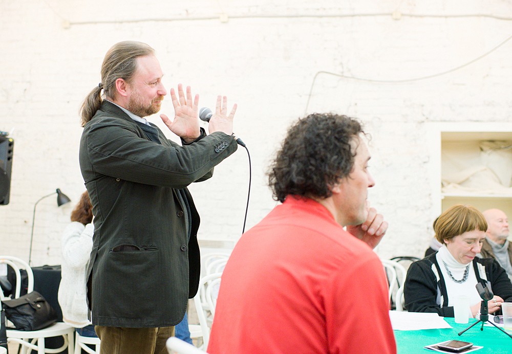 Тему диалога продолжил другой куратор выставки, Сергей Чапнин, ответственный редактора «Журнала Московской Патриархии» и журнала «Храмоздатель»: «Одна из прозвучавших версий — мы налаживали диалог Церкви и современного искусства. Но, признаюсь честно, мне эта версия не кажется убедительной. Более того, неудачна сама постановка вопроса. Да, в ходе выставки настойчиво звучала тема диалога, но не в единственном числе, а диалогов: диалога Церкви и современного искусства, традиционалистов и новаторов в церковном искусстве, художника-христианина и светского зрителя. Безусловно, мы будем говорить об этом подробно, но сейчас подчеркну другое: мы нашли удачную площадку для общения, где разные стороны и говорят, и одновременно могут слышать друг друга».