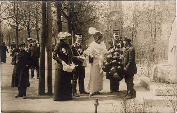 Цветы давались в обмен на небольшое пожертвование. Их, как значки на булавке, как бутоньерку можно было приколоть на лацкан или на платье. Сборщицы шли по городу сначала как единое шествие, потом расходились группами или поодиночке – приходили на площади, в народные дома.