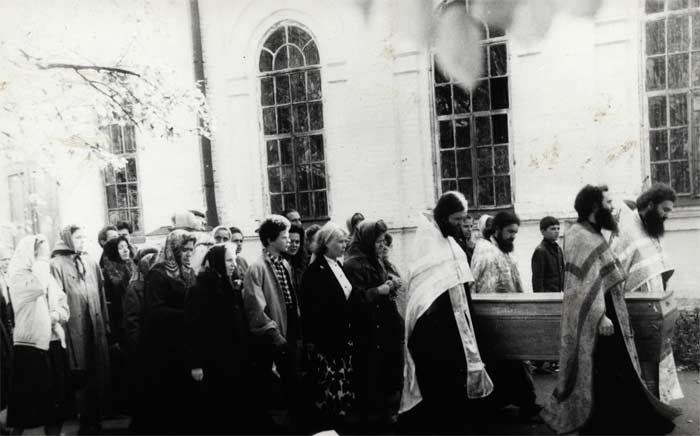 В таком поруганном виде гроб с телом старца находился в храме, когда об этом узнали верующие. Один из священнослужителей, игумен Игорь, написал руководству ботсада заявление, что является племянником преподобного и просит отдать ему тело для погребения. Естественно, ему не отказали, потому что все равно нужно было гроб куда-то девать. Так мощи оказались захоронены на городском Зверинецком кладбище. Было это в октябре 1966 года.